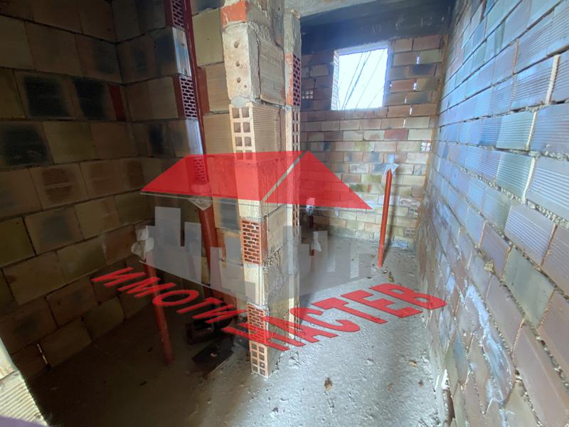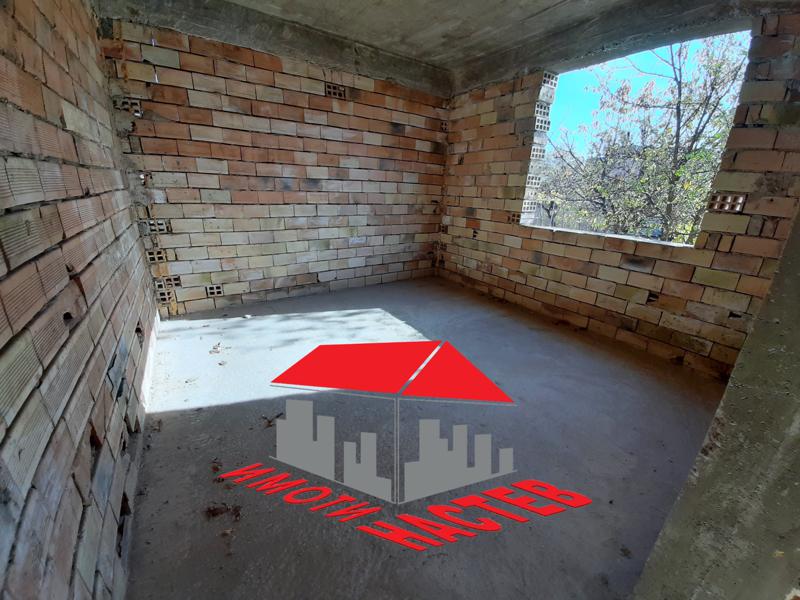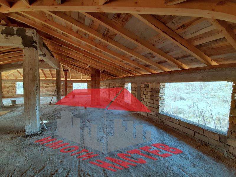 ИМОТИ НАСТЕВ предлага за продажба самостоятелна, двуетажна, тухлена къща на плочи, ново строителство (на груб строеж). Къщата разполага на всеки етаж с входно антре, две големи спални, трапезария, кухня, две тераси, баня, тоалетна и килер.Имотът разполага с хубав, равен двор с площ 1445кв.м.Има проект за построяване на още две къщи в парцела.Имотът се намира на тихо и спокойно място, с красива панорама.