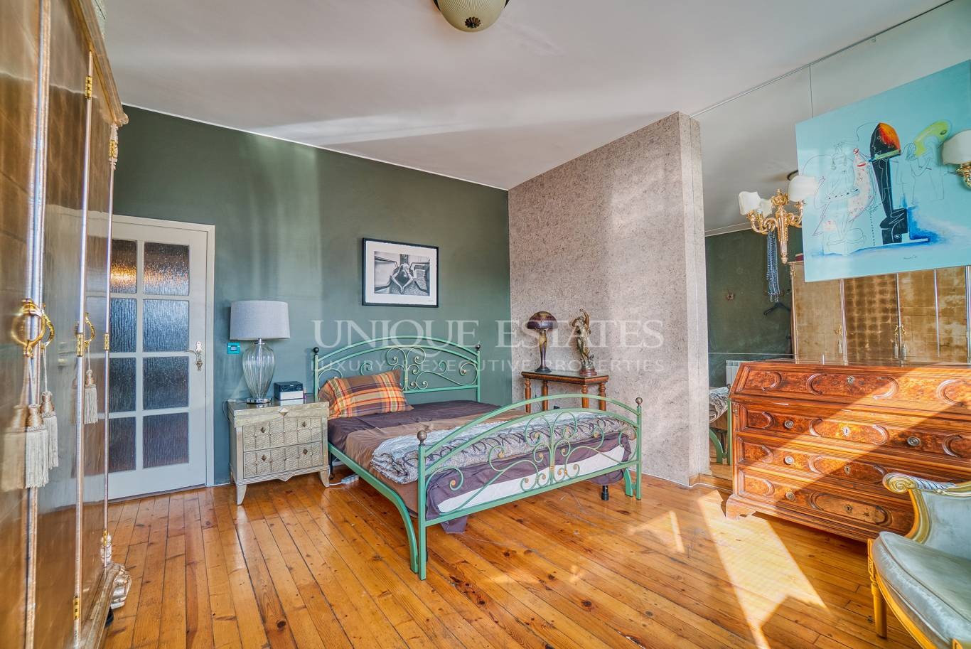 Unique estates има удоволствието да ви представи за продажба изключително просторен апартамент, разположен на 4 етаж в сграда с отлично поддържан вход на емблематичния бул. Витоша . Жилището се отличава с впечатляваща гледка към града и планината, както и с усещане за светлина и простор благодарение на високите тавани и големите прозорци.