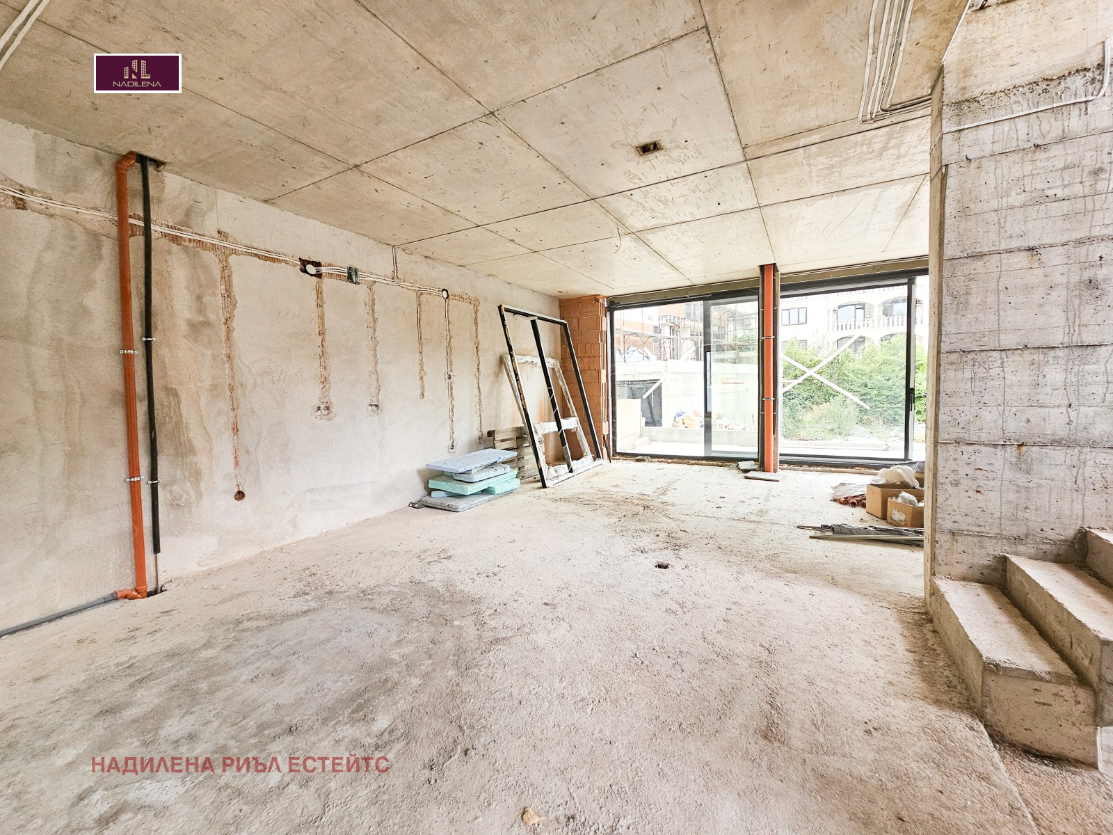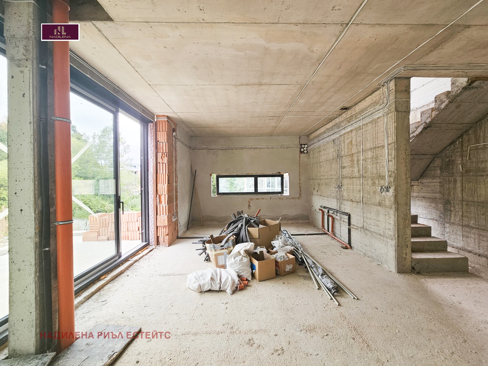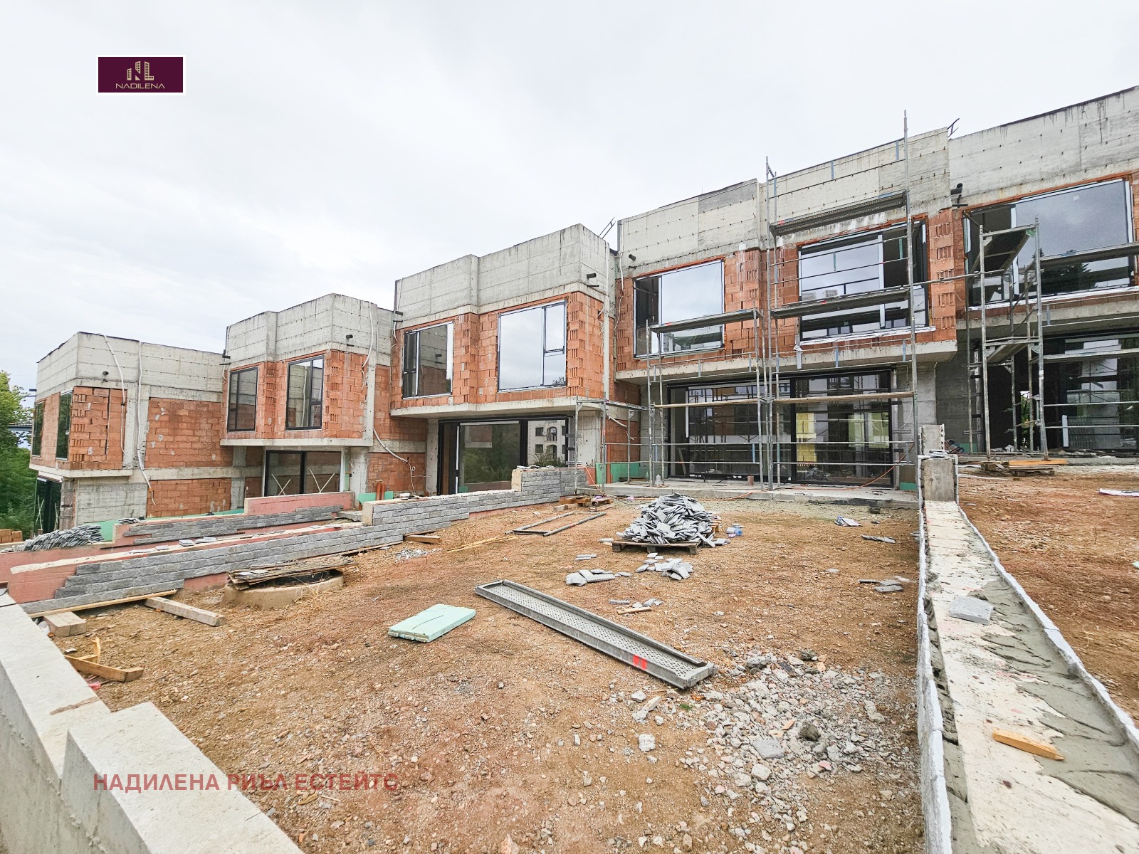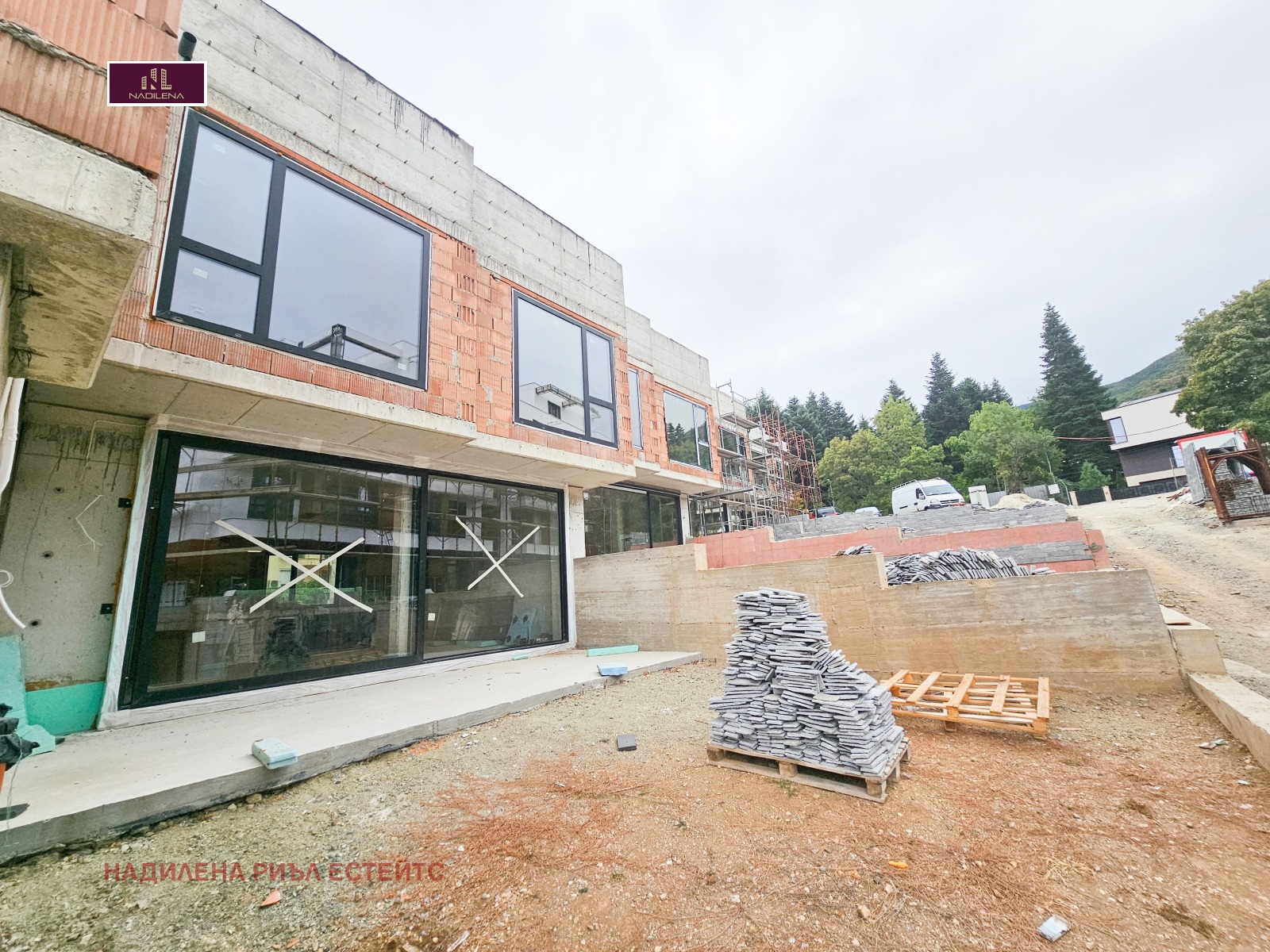 ПРЕКРАСЕН ИЗГЛЕД! В ПОЛИТЕ НА ВИТОША! Надилена риъл естейтс предлага за продажба къща тип близнак, в процес на активно строителство. Част е от затворен комплекс с 6 къщи, изграждащи се в терен с площ от 1560кв.м. Намира се на ул. 'Панорамен път', което е огромно предимство-целогодишен достъп, бърза връзка към Околовръстен път, бул. 'Цар Борис III' и оттам във всички точки на града. Къщата е с 2 входа, РЗП 432кв.м. и прилежащ обособен двор от 236кв.м., като площта е разпределена на 3 нива, а именно: сутерен- голям за гараж за няколко коли с площ от 88 кв.м.(част от помещението може да стане фитнес, механа и т.н.), котелно, на партера-светла дневна с трапезария, кухненски бокс, като от дневната се излиза на тераса. На това ниво има санитарен възел, кабинет. По стълби се отива към 2-рото ниво-родителска спалня със собствена баня с тоалетна, 2 спални, 2-ра баня с тоалетна, мокро помещение. По стълби се отива на голяма покривна тераса с невероятна гледка към Витоша и града. Къщата са на етап Акт 14, като се Разрешение за ползване до 08.2026г. Имотът е със следните довършителни работи: стените са на шпакловка, пода е на замазка, дограмата е REYNAERS, направени са и всички изводи за климатици. Отопление е предвидено подово отопление на газ. Всяка от къща има индивидуална пречиствателна станция за отпадните води. Предвидено е облицовка от естествен камък, а вентилируемата фасада ще осигури надеждна защита, подобрява топлинния комфорт и създават естетичен завършек на имота. Гъвкави схеми на плащане. Собственост е на юридическо лице и над посочената цена се начислява ДДС. За допълнителна информация и огледи се обръщайте към Надя Антова-088/9999 413, Васил-0899/18 35 80, Елена- 0898/60 55 33