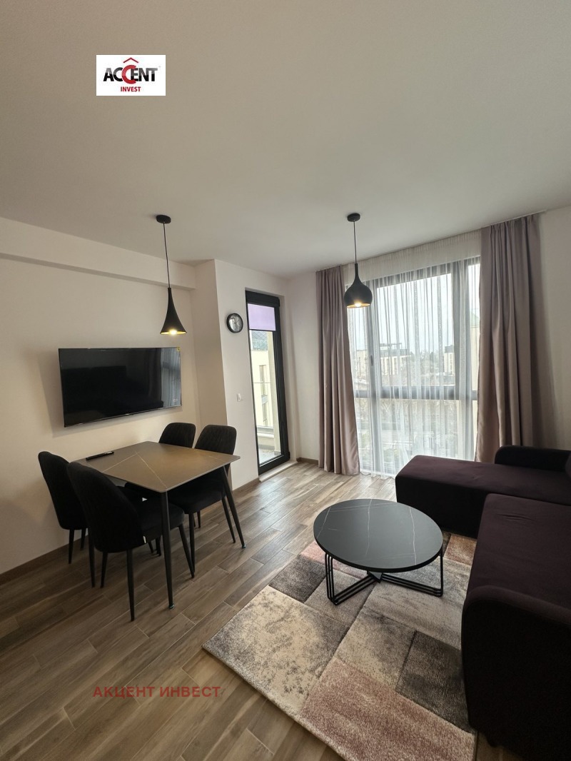 Апартаментът е нов, никога не е бил отдаван под наем. Разполага с площ от 108 кв.м, на които са разположени дневна с кухня, две спални, тоалетна, баня и перално помещение. Предлага се напълно обзаведен и оборудван.