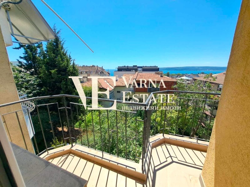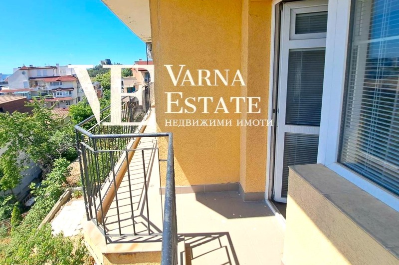 Варна Естейт предлага на Вашето внимание атрактивен и много просторен двустаен апартамент, който се намира на втори етаж от общо пет в тухлена сграда, строителство 2007г. Жилището е с площ от 95 кв.м. и има следното разпределение: Просторно антре, хол с кухненска част, спалня, тераса, комбиниран санитарен възел, както и голямо избено помещение. Предлага се обзаведен, във вида от снимките. Поради денивелацията на сграда не се нуждаете от асансьор, а в същото време има хубава височина и прекрасна морска панорама.
