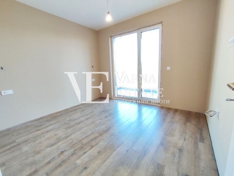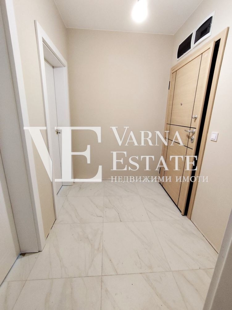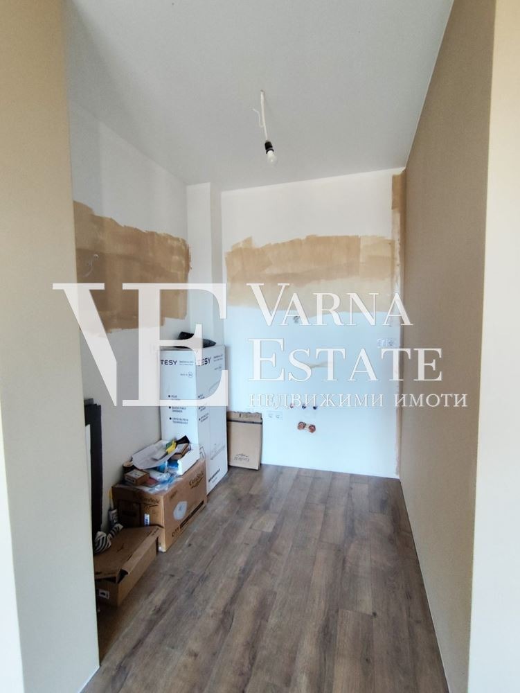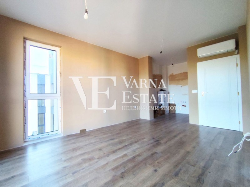 Варна Естейт предлага на Вашето внимание двустаен апартамент, който се намира на пети етаж от общо шест в тухлена сграда с АКТ 16, строителство 2024г. Жилището е с площ от 59 кв.м. Има следното разпределение: входно антре, дневен тракт с кухненски бокс, спалня, обща за двете стаи тераса, комбиниран санитарен възел. Апартаментът се предлага завършен 'ДО КЛЮЧ'. Изложението е източно. Към имота има маза, както и външно паркомясто, включено е цената. Ниска такса поддръжка!