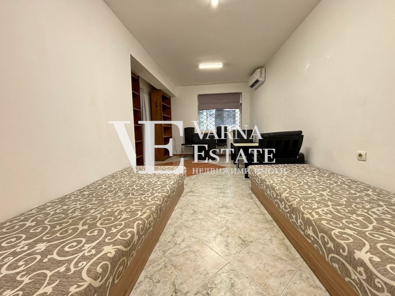 Варна Естейт предлага на Вашето внимание имот, който се намира на партерен етаж от общо три в жилищна сграда, строителство 2009г. С площ от 50 кв.м. и е разделен по следния начин: 2-стаен: антре, дневен тракт с кухненска част, спалня, комбиниран санитарен възел; 1-стаен: една стая разделена на кътове и санитарен възел. С два отделни входа. Продава се обзаведено и оборудвано, с климатик. Сградата е ситуирана в изключително комуникативен район - с лесен достъп до главни улици, големи и малки магазини, университети, други училища, детски градини, спирки на градския транспорт и всичко необходимо. Предвид атрактивната си локация, имотът е подходящ както за инвестиция с цел отдаване под наем, така и за живеене!