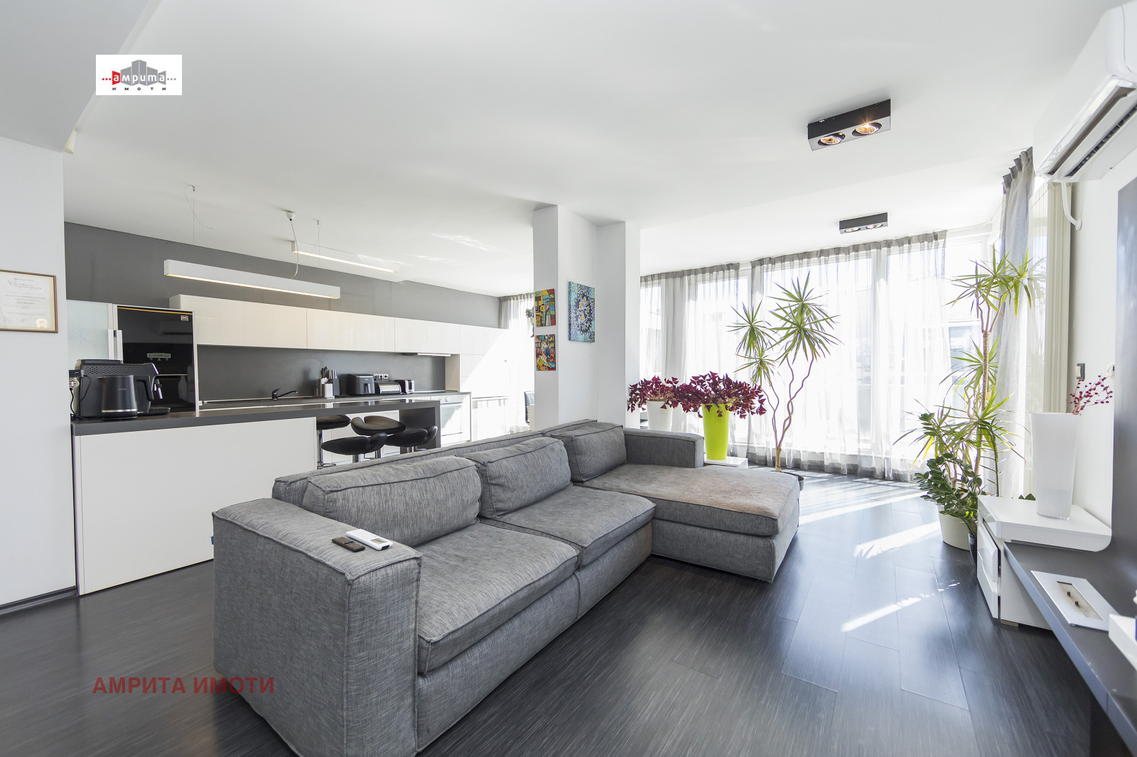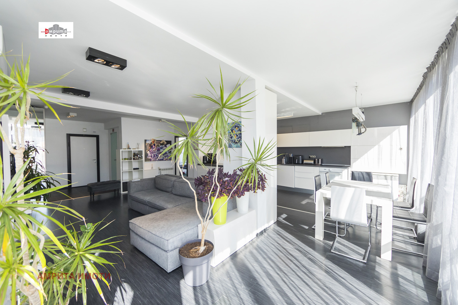 Изключително светла дневна зона с кухня, трапезария и хол в едно