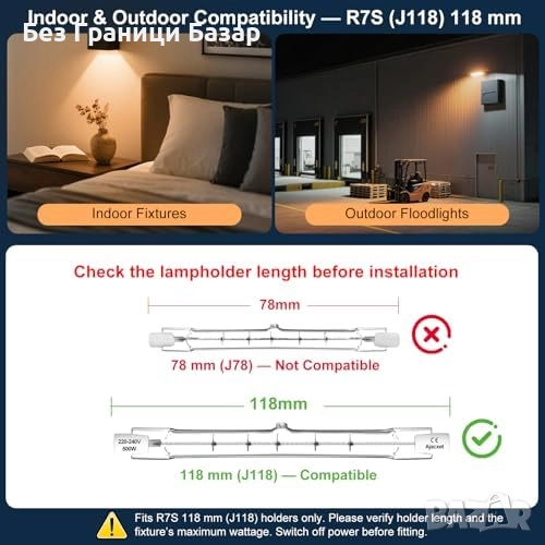 Универсална съвместимост с R7S 118мм фасунга и напрежение 220–240V