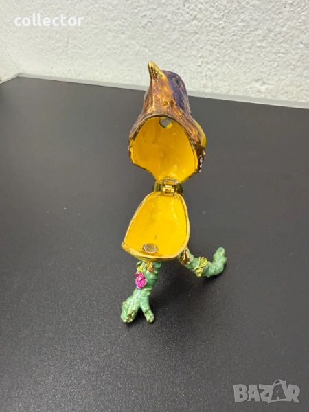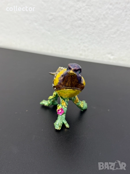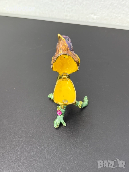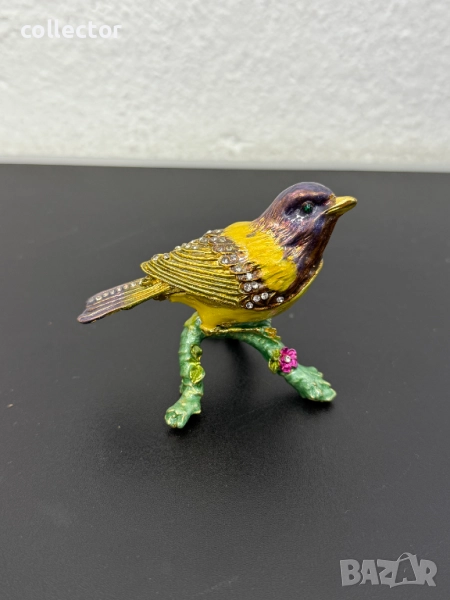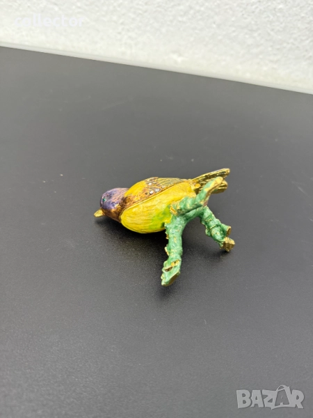 Красива метална кутийка за бижута с емайл, изобразяваща - Златокрила чинка. Отлично състояние с оригинална кутия.