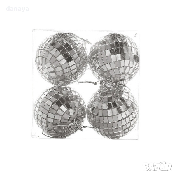 6190 Комплект коледни топки за елха с диско ефект, 7 см, 4 броя