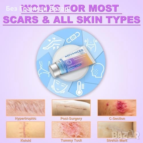 Подходящ за белези от цезарово сечение, изгаряния, акне, операции, наранявания