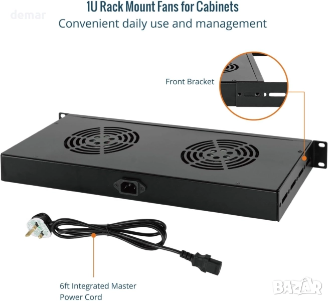 Този вентилатор за охлаждане за монтаж в шкаф е изработен от издръжлива стомана и се предлага с вход 220–240V, захранващ кабел с дължина 1,8 м, GB щепсел и пълни аксесоари за монтаж. Проектиран с два вентилатора за силен въздушен поток, той ефективно управлява топлината в ограничени пространства, особено за устройства, разсейващи топлината от долната част. Компактният му размер 1U спестява място в шкафа, а простият превключвател позволява лесно включване/изключване. Подходящ за употреба в мрежови шкафове или шкафове с ширина 49 см, той осигурява надеждно охлаждане в множество сценарии.