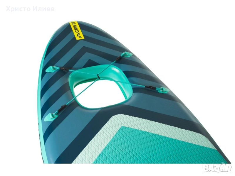 Дъската за гребане изправена на крака е с висококачествена еднокамерна система, която осигурява ниско тегло. Дъската е оборудвана с нехлъзгава повърхност и перка, за да се осигури безопасно и комфортно каране.