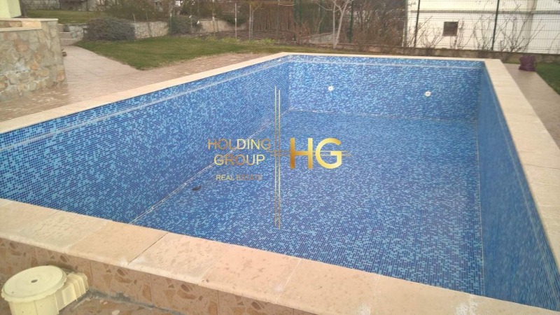 Разгъната застроена площ 580 кв., двор 780 кв. м., Обзаведена се продава с басейн на двора.На двата етажа има по два апартамента с хол и кухненска част,спалня, коридор, баня с душ кабина, извод за джакузи, тоалетна,две тераси, френски прозорци. стая с коридор, баня, тоалетна,тераса. помещение за склад. Всички са обзаведени и климатизирани. Третият етаж е идентичен на описания втори етаж.