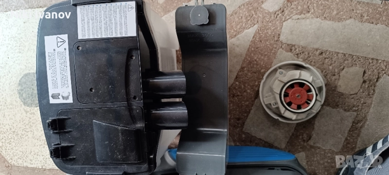Продавам перяща прахосмукачка Zelmer на части. Налични са само частите от снимките. На практика прахосмукачката е използвана много малко след което спря. Оказа се че има проблем в платката.Посочената цена се отнася за двигателя. Цената за контейнера за отпадък е 30 евро ,а на малкият контейнер за препарат 20 евро. Ако ви интересува нещо друго от прахосмукачката питайте. Не разполага с тръбите,приставките и с перящия механизъм. За всички неща на куп цена е 85 евро ,но само при лично предаване.