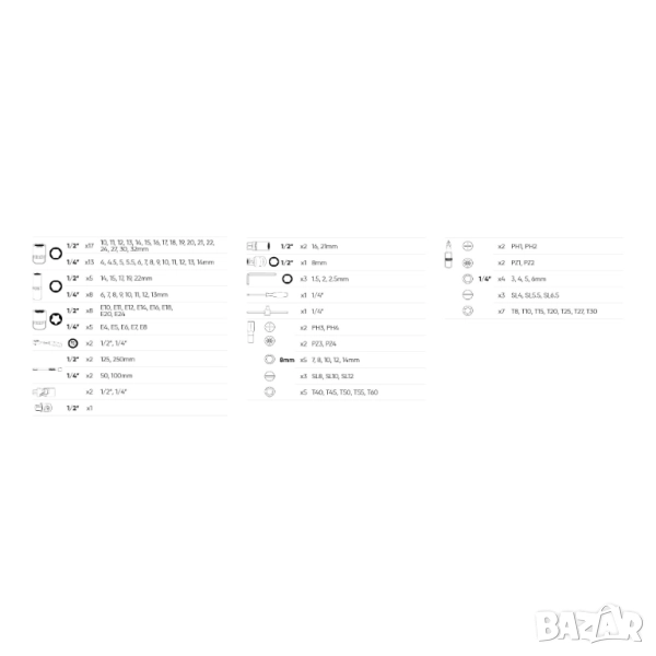 ПРЕДСТАВЯМЕ НА ВАШЕТО ВНИМАНИЕ НОВ - НЕУПОТРЕБЯВАН КУФАР с ИНСТРУМЕНТИ. 108 бр / 1/2 + 1/4, ХРОМ