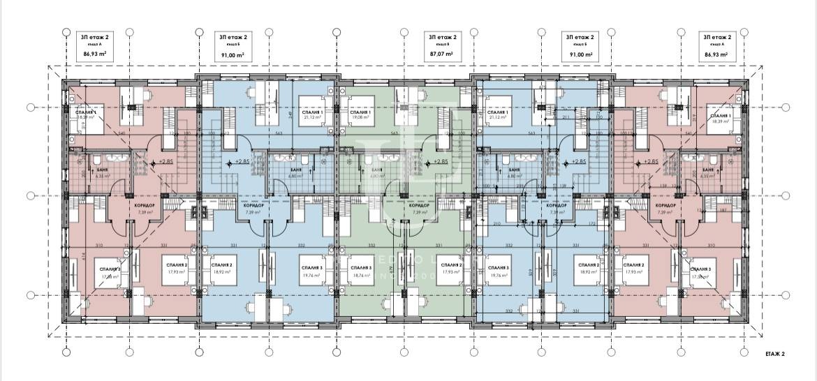 Етаж 1- три спални, коридор и баня с тоалетна Цената е без включен ДДС. Ref. ID:23521