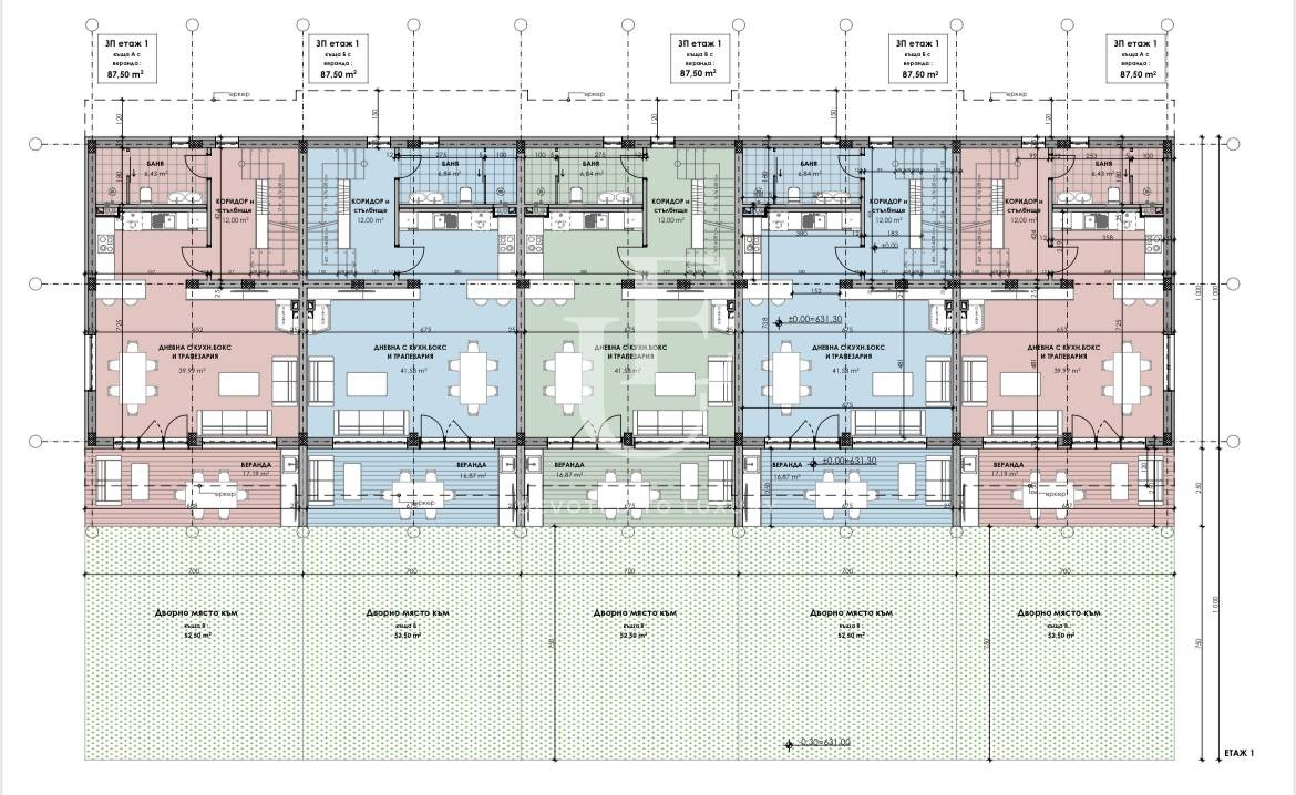 Всяка къща ще бъде завършена на шпакловка и замазка.