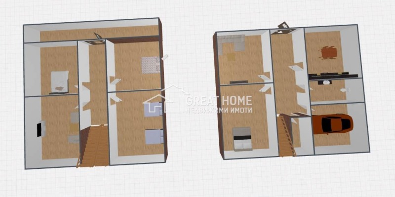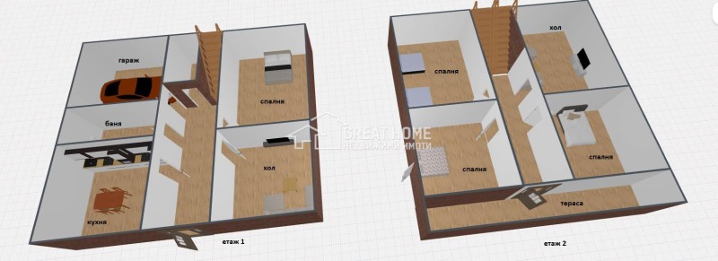 Къща 2 етажа по 100 кв.м всеки + 100 кв.м таванско помещение, което може да се превърне в допълнително жилищно пространство.