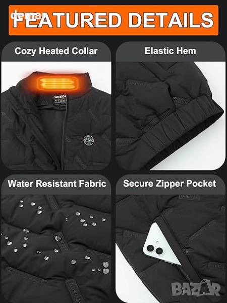 Мъжка отопляема жилетка Gokozy с 12V 20000mah батерия, 20W бързо зареждане и 15 зони на отопление, L