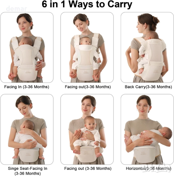 Това кенгуру за бебета е ергономично проектирано за безопасност и комфорт, предлагайки шест регулируеми позиции за носене, които поддържат различните етапи на растеж, включително опция за новородено. То разполага с широки, подплатени презрамки за раменете и талията с регулируема лента за талията и удължител, за да пасне на различни типове тяло. Практичните допълнения включват подвижна торбичка с цип, комплект от три части за бебешки лигавници и калъф за залъгалка, което я прави удобна за ежедневна употреба. Комплектът включва още удължител за лентата за талията, ръководство за употреба и подаръчна кутия.