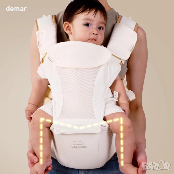 Бебешко кенгуру Bebamour за новородено до малко дете, с качулка за глава, бежово