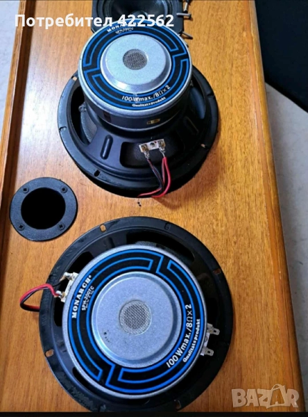Поръчкова изработка на тонколоните с вградени в тях говорители MONACOR. Два от тях са на снимките.Цената само на един говорител на пазара е около 80 евро. Чуват се чудесно и носят наслада при слушане на готина музика. Имат две поправими следи от пренасяне,понеже не са леки.Моля, при интерес пишете съобщение!Благодаря!