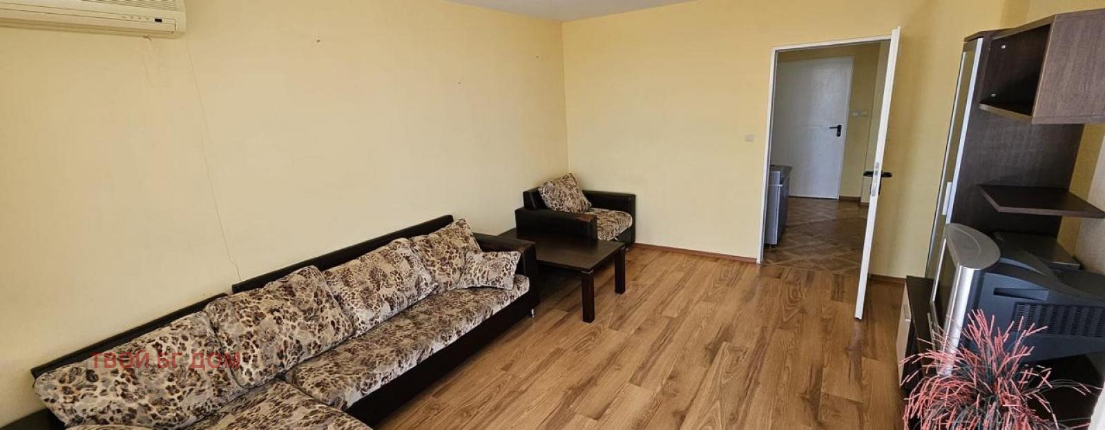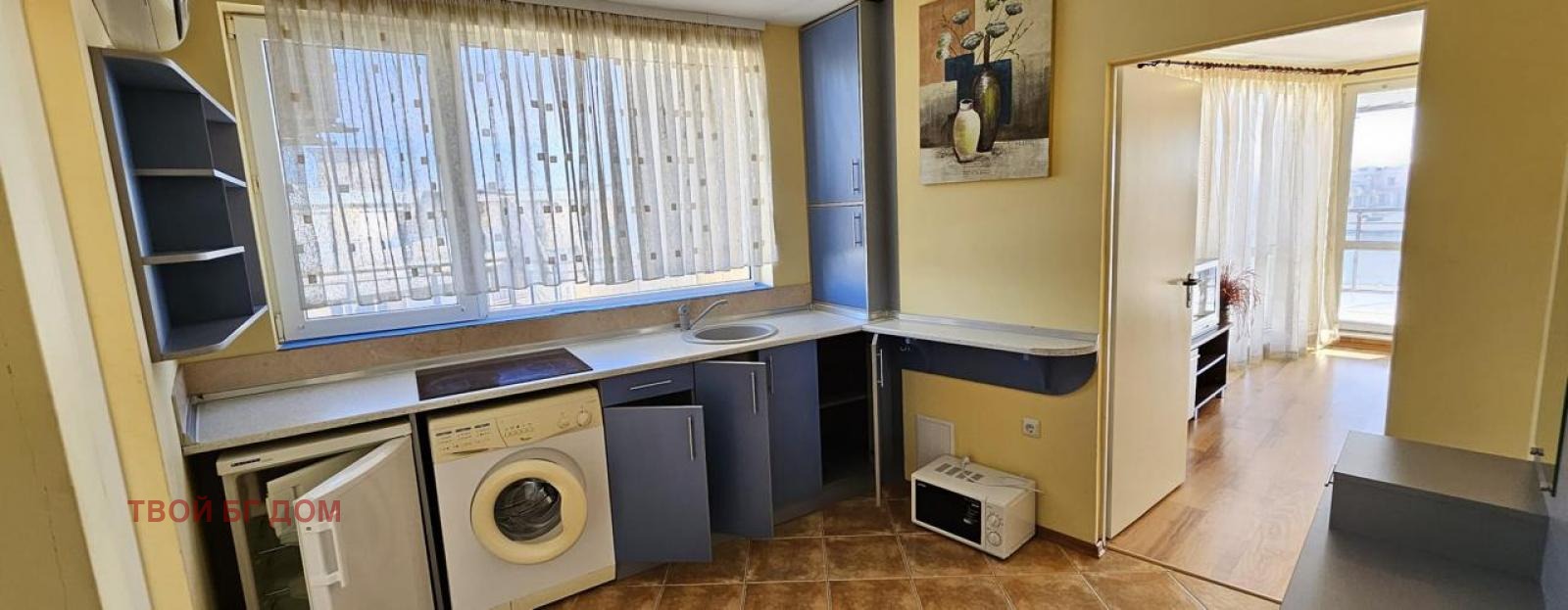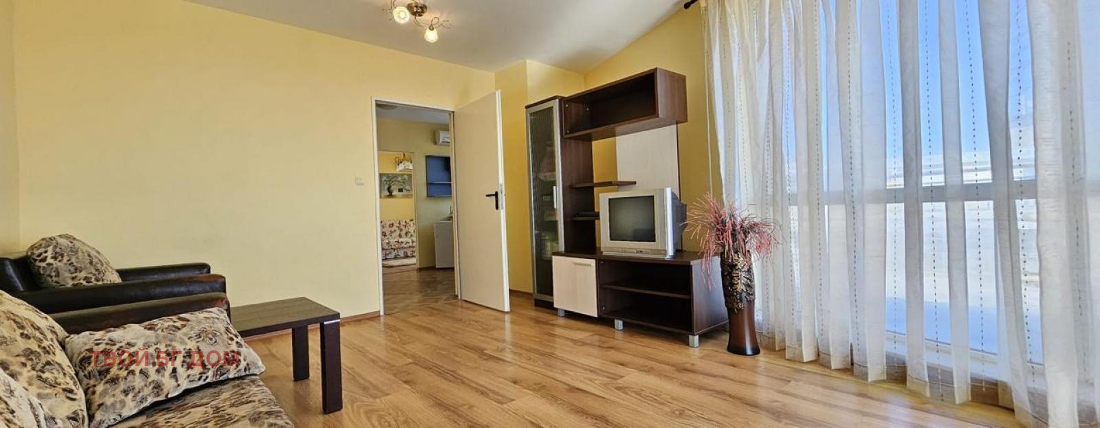 Предлагаме за продажба просторен тристаен апартамент. Апартаментът се намира на 5 етаж, с площ от 116 кв. м. Състои се от антре, дневна с кухня и трапезна зона, 2 спални, баня с тоалетна, балкон с гледка море. Предлага се за продажба с обзавеждането и оборудването. Към имота има и мазе.