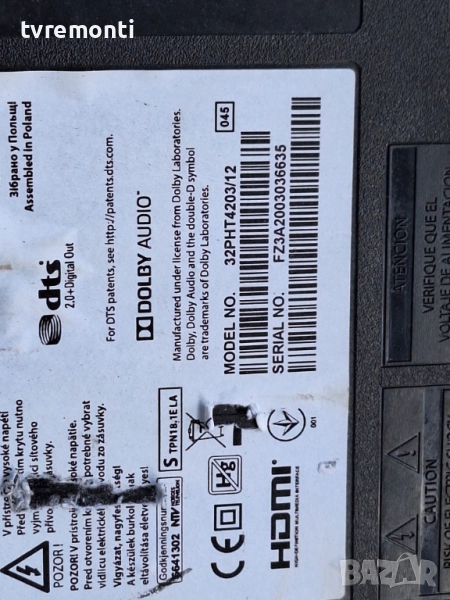 MAIN BOARD ,715G9287-C02-002-004Y, ,за 32-инчов телевизор PHILIPS Модел 32PHT4203/12 , с дисплей TPT320B5-H1F01.D revS03A. Платката е използвана, но гарантирано работеща, демонтирана от телевизор със счупен дисплей. Тествана е от нашия техник.