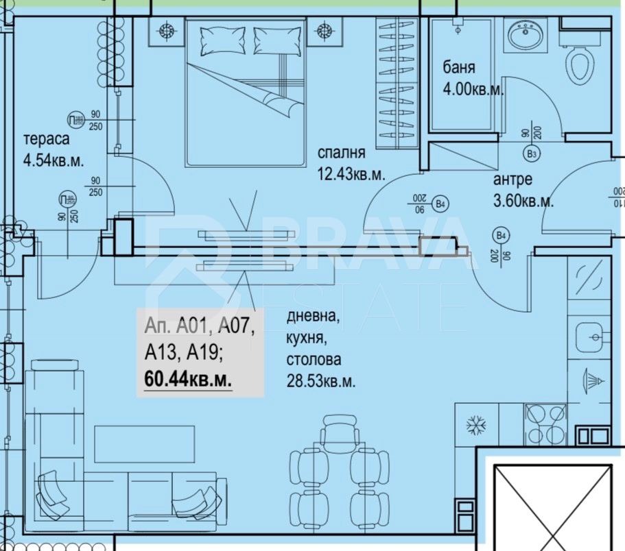 ➡️Разпределения: Функционални разпределение състоящо се от входно антре, просторна дневна с кухненски бокс, спалня,баня с тоалетна и тераса .