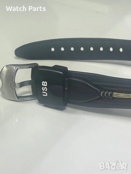 Черен циферблат със сребърни стрелки и цифри. USB флаш устройство за съхранение, стартиращ диск. USB порт, скрит в каишката на часовника. Водоустойчив. Черна регулируема каишка.