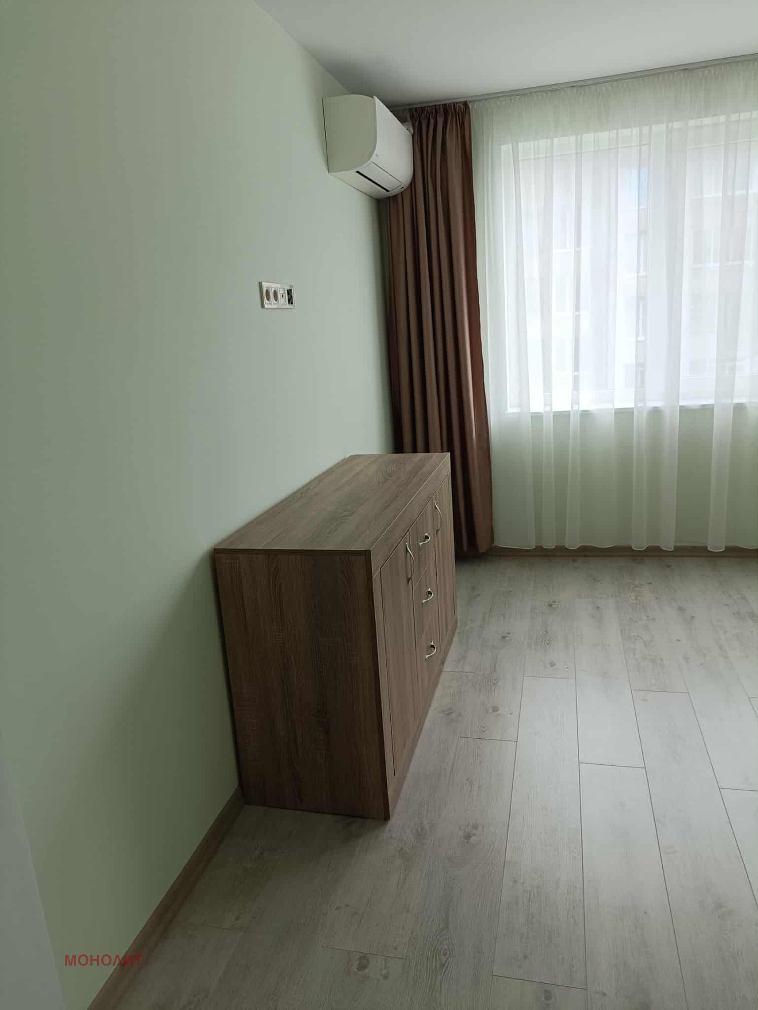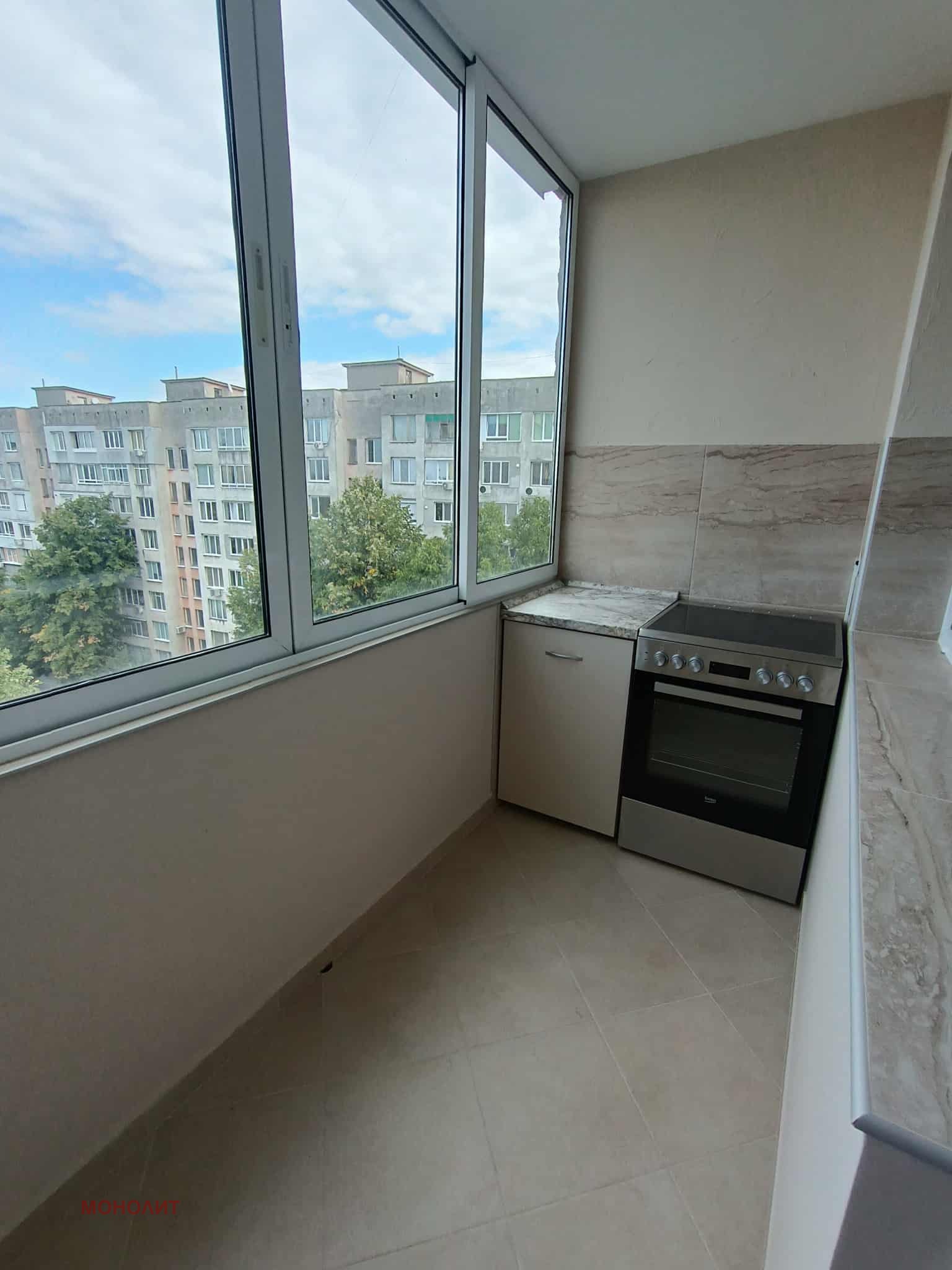 Апартаментът е след основен ремонт, в отлично състояние. Състои се от дневна, две спални, тераса, сервизно помещение и складово помещение. Отдава се дългосрочно.