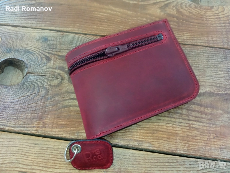 Ръчно изработен червен кожен портфейл/телешка кожа , серия crazy horse/– стил, практичност и здравина в едно. ✨
