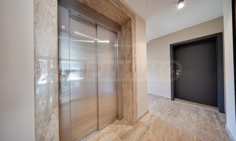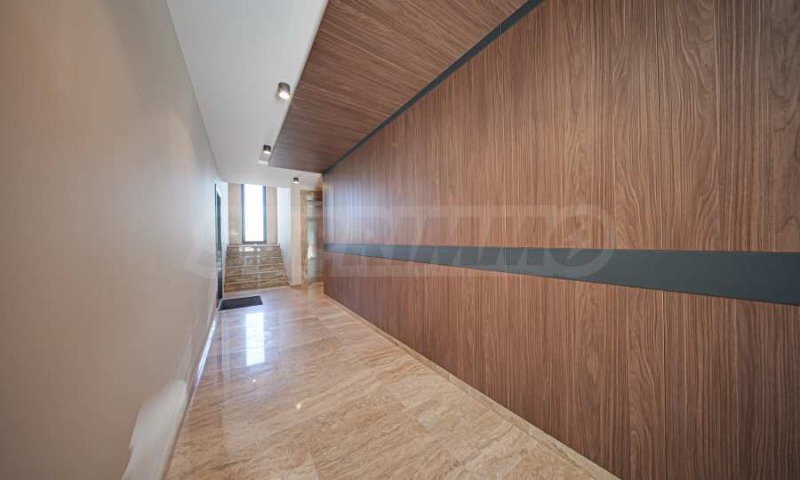Луксозно изпълнени входни пространства с настилки от естествен камък и дизайнерски елементи.