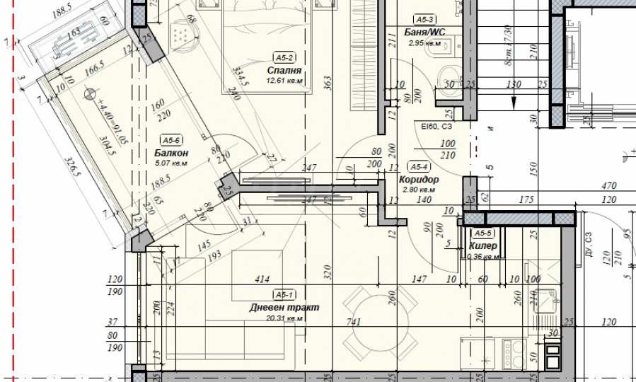 Жилището с обща площ от 58.78 кв.м се намира на 2-ри етаж от 4, с изложение юг.