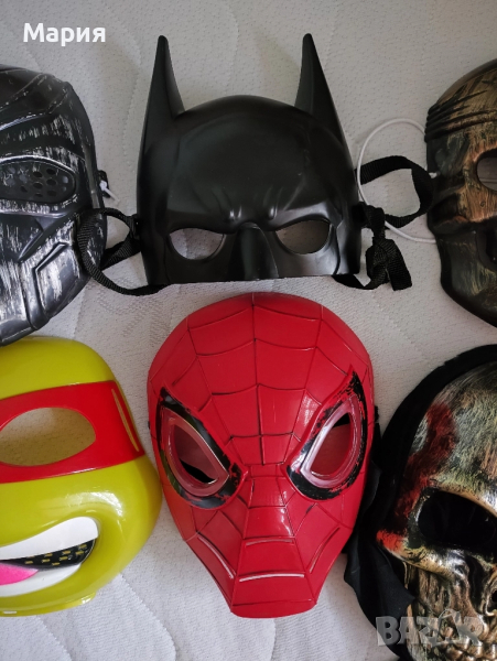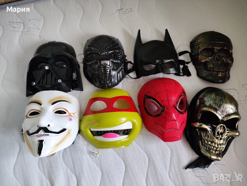 Колекция маски за игра. Маска на костенурката нинджа Рафаело, на Дарт Вейдър, Спайдърмен, Батман, Капитан Америка, Анонимните и черепи. Обща цена 20 лева.