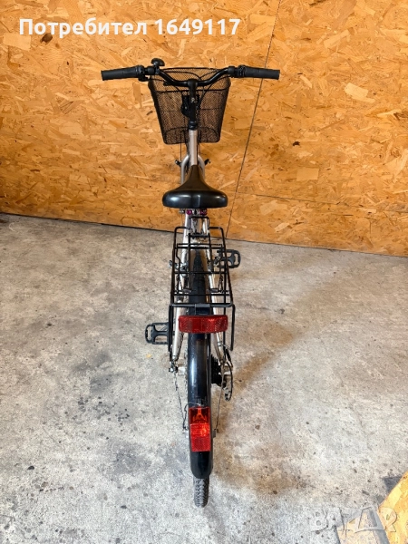 Заден багажник с натоварване до 20кг + кошница за багаж отпред. Олекотени пластмасови калници, алуминиева стойка, динамо с халогенен фар и габаритна светлина, светлоотразители, звънец.