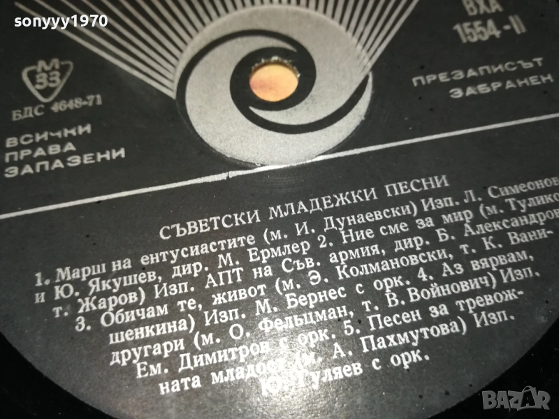 ПЛОЧАТА Е СЪВЕТСКИ ВОЕННИ ПЕСНИ-КРАЙНИ ЦЕНИ.ПАЗАРЛЪЦИ НЕ! пращаме само с еконт с преглед и тест след превод на капаро за куриерската услуга поради зачестили некоректни потребители-поръчки само тук в сайта! по телефона и със смс не! крайни цени! бартери не правиме! ПАРИ НЕ ВРЪЩАМЕ! всеки ден нови неща-още 2-3 наши обяви тук