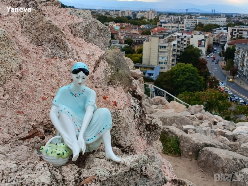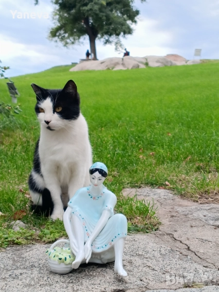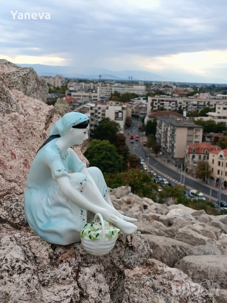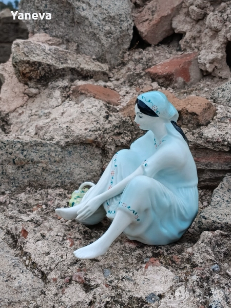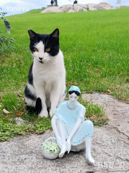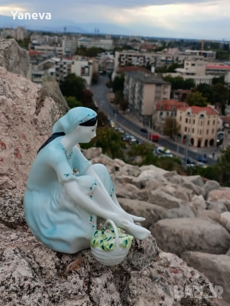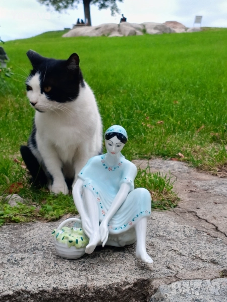 Стилът е класически, напомнящ на Ар Деко или колекционерски фигурки от средата на XX век. Размер 18 см. Цена 60 лв.