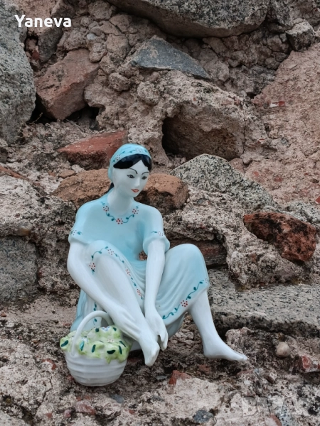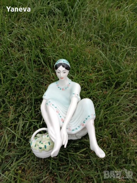 Vintage порцеланова статуетка на дама с кошница в седнала поза → Обява 51912759