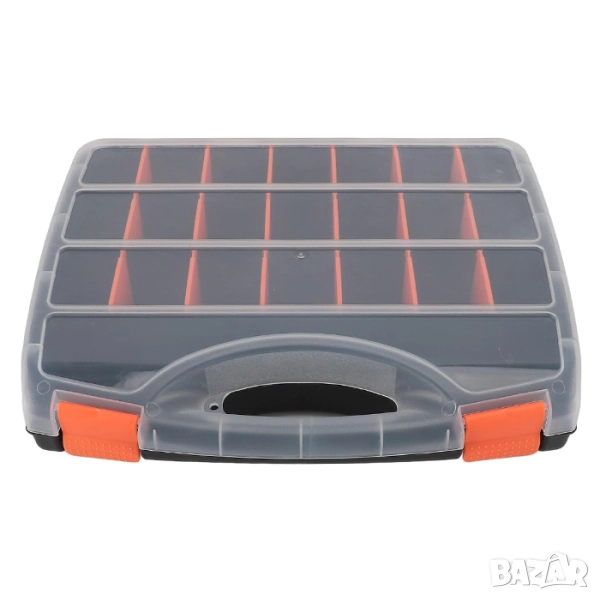 Функционален и удобен органайзер с 21 отделения, създаден за подреждане и съхранение на дребни инструменти, крепежни елементи и аксесоари. Благодарение на прозрачния капак и практичната конструкция, винаги имате ясен преглед и лесен достъп до съдържанието.
