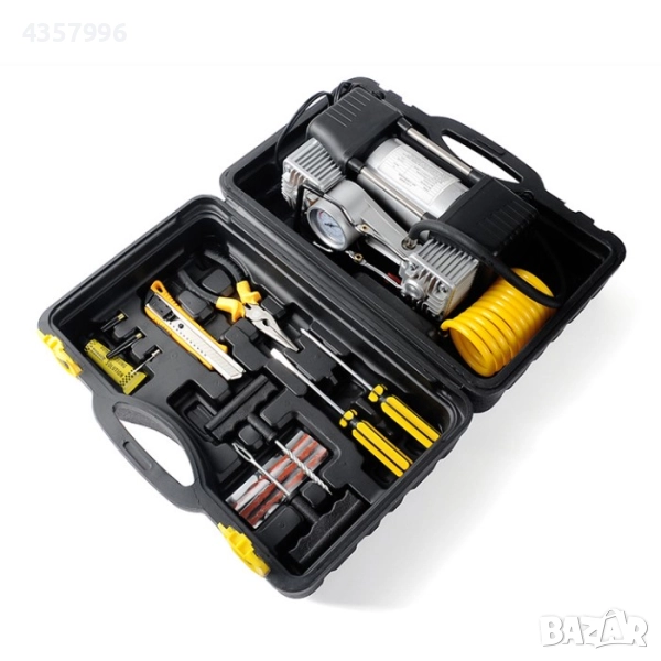 Компресора разполага със специално куфарче за съхранение на целия комплект.