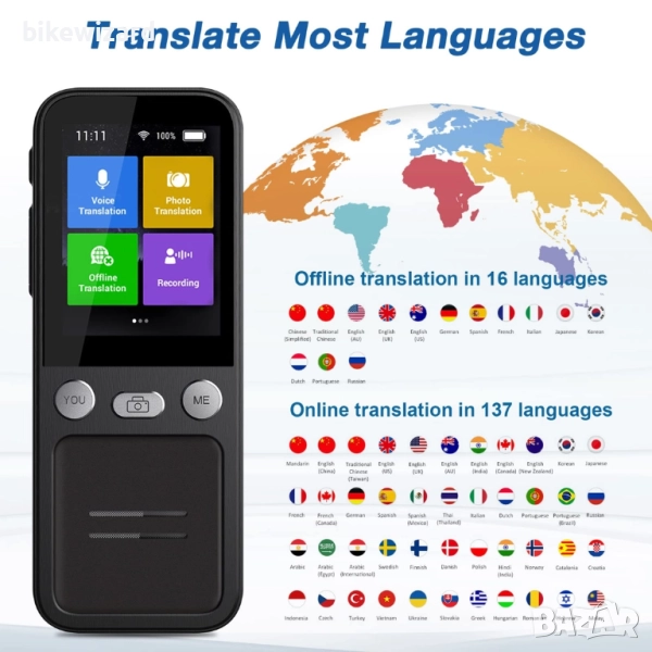 Преводач на 137 езика с гласов/фото превод, 2.4-инчов сензорен екран, поддържа Wi-Fi/Hotspot/офлайн → Обява 51913819
