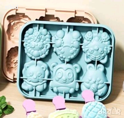 6 животни близалка ескимо сладолед Popsicle Попсикъл силиконова форма молд калъп → Обява 51914182