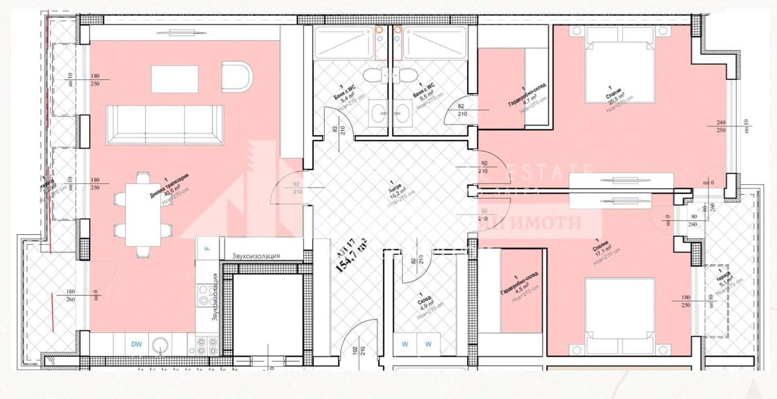 Височина на таваните: 2.80 м усещане за простор и свобода