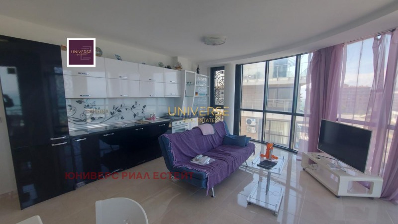Предлагаме за продажба апартамент 2+1 на брега на морето с панорамна гледка в Поморие. Апартаментът се състои от трапезария/кухня, две спални и голяма тераса. Апартаментът е напълно реновиран и разполага с луксозни мебели, модерни уреди и подово отопление. Комплексът разполага с басейн. Таксата за поддръжка е 150 евро на година. Всички необходими градски удобства са наблизо, а манастирът Свети Георги е на 7 минути пеша. #4877