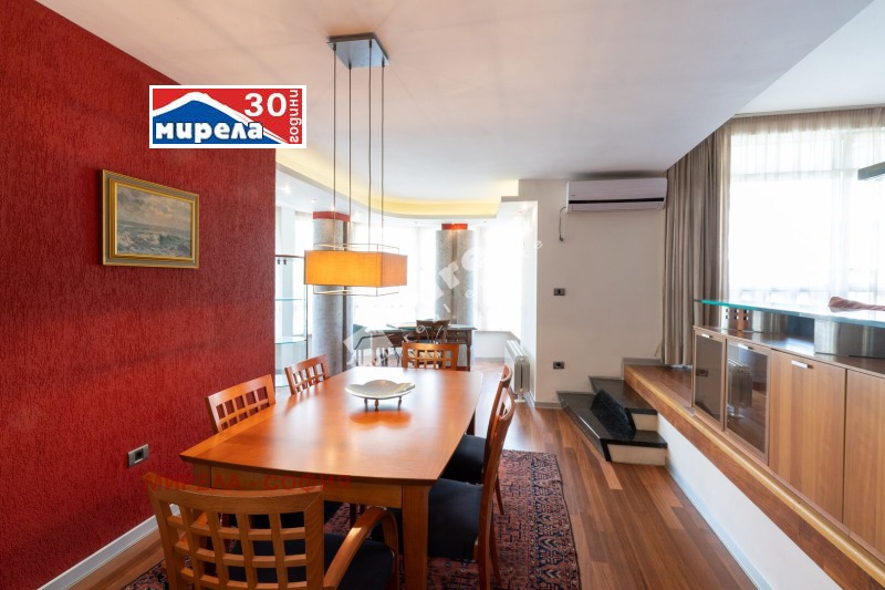 Жилището се състои от просторна дневна с функционираща камина и трапезария на две нива, обособен кът за работа със старинно писалище, цялата дневна е с френски прозорци, светла кухненска част напълно оборудвана със голяма фурна с грил, котлони с керамичен и газов плот, голям хладилник, миялна и бар плот, три спални (една родителска и две детски), две бани с тоалетна, две тераси и антре.