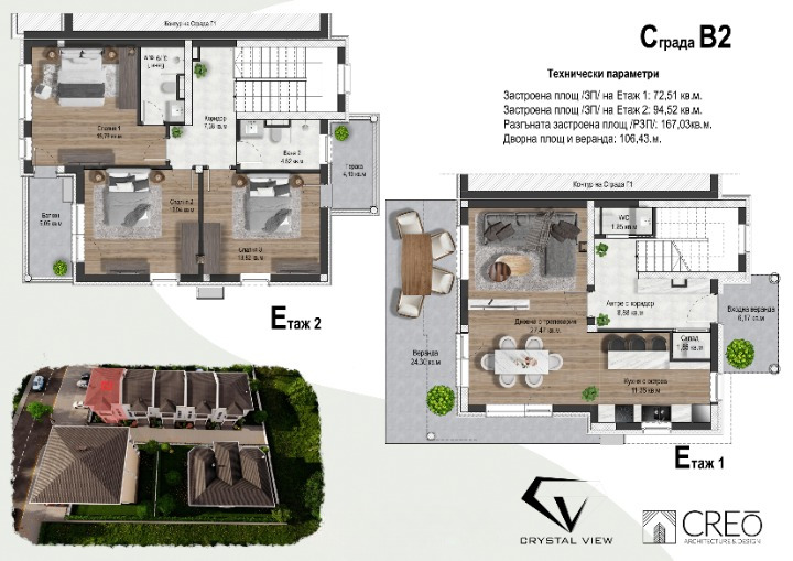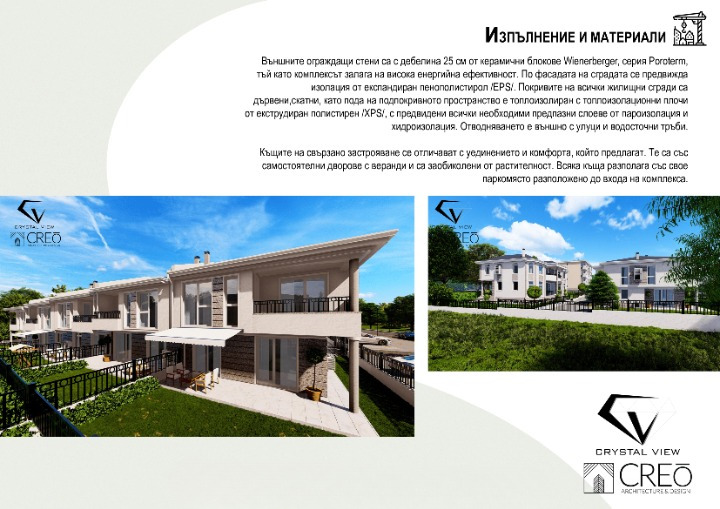 Представяме Ви модерни къщи в процес на строителство, част от затворения комплекс CRYSTAL VIEW истинско райско кътче, където уютът на съвременния дом среща красотата на природата.