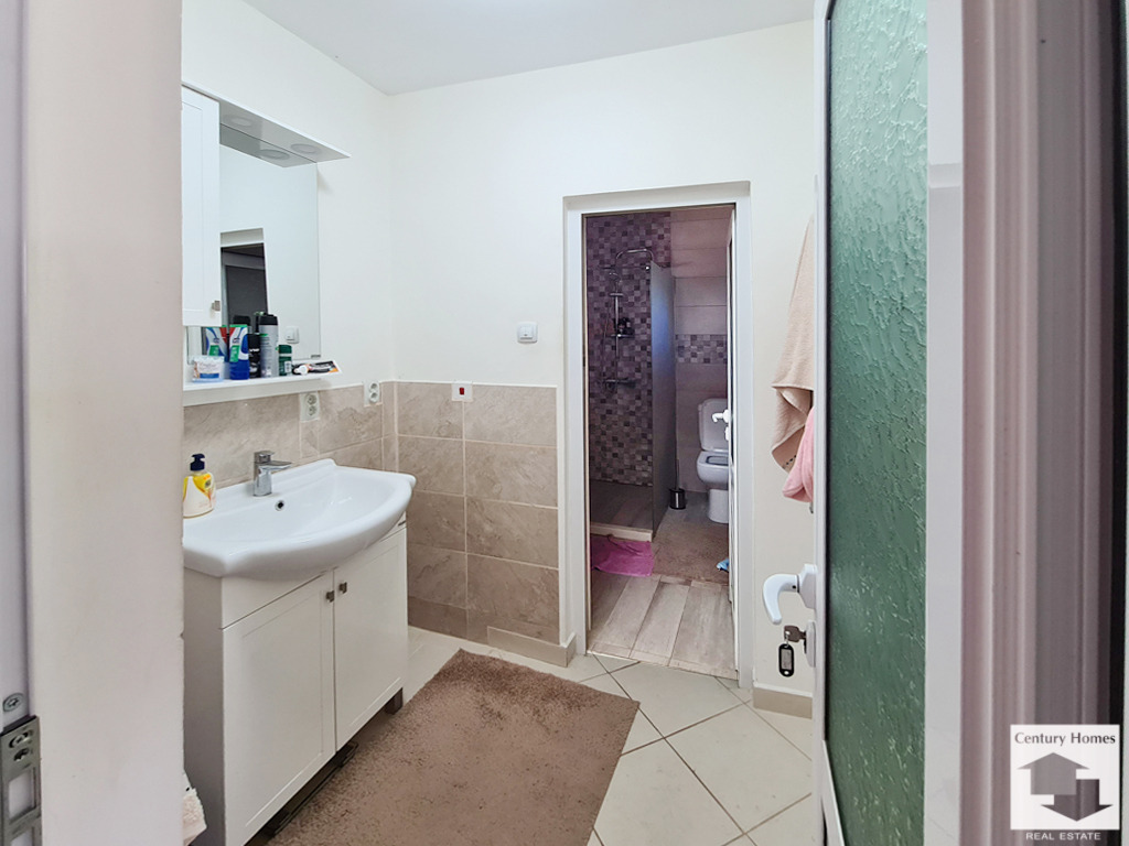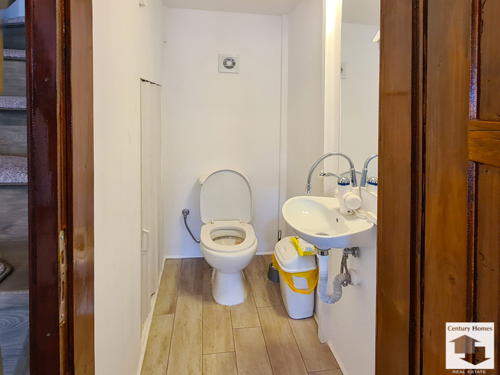 С отделен вход и с връзка с основната къща е пристройка с коридор и вход към складово помещение/котелно, баня/WC и голяма спалня.