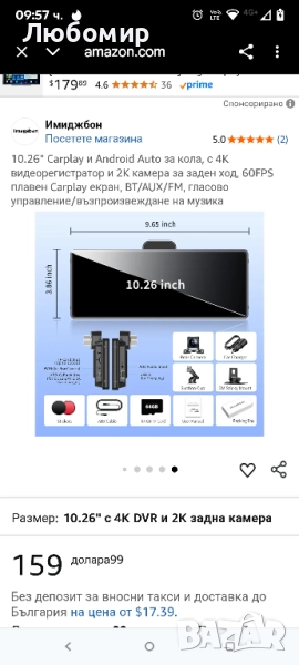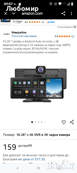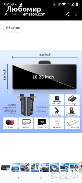10.26" Carplay и Android Auto за кола, с 4K видеорегистратор и 2K камера за заден ход, 60FPS