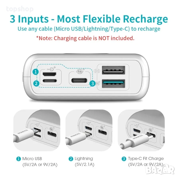 Зареждане на ТРИ едновременно: Необходими са само 7 часа, за да заредите напълно 20 000mAh батерията с 18W зарядно за стена. С 3 входа: Micro-USB, Type-C, Lightning, осигурявате високо удобство при презареждане на тази батерия с всеки от тези 3 широко използвани кабела. Тройният дизайн ви позволява да споделяте преносимо захранване със семейства и приятели.