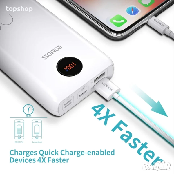 Чисто нова в целофан батерия power bank за телефон ROMOSS 20000mAh, 22.5W и PD20W външна батерия...