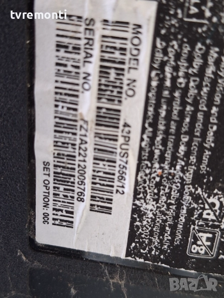 MAIN BOARD , 715GB810-M1A-B00-004D, ,за 43-инчов телевизор PHILIPS Модел 43PUS7556/12 , с дисплей TP → Обява 51916494